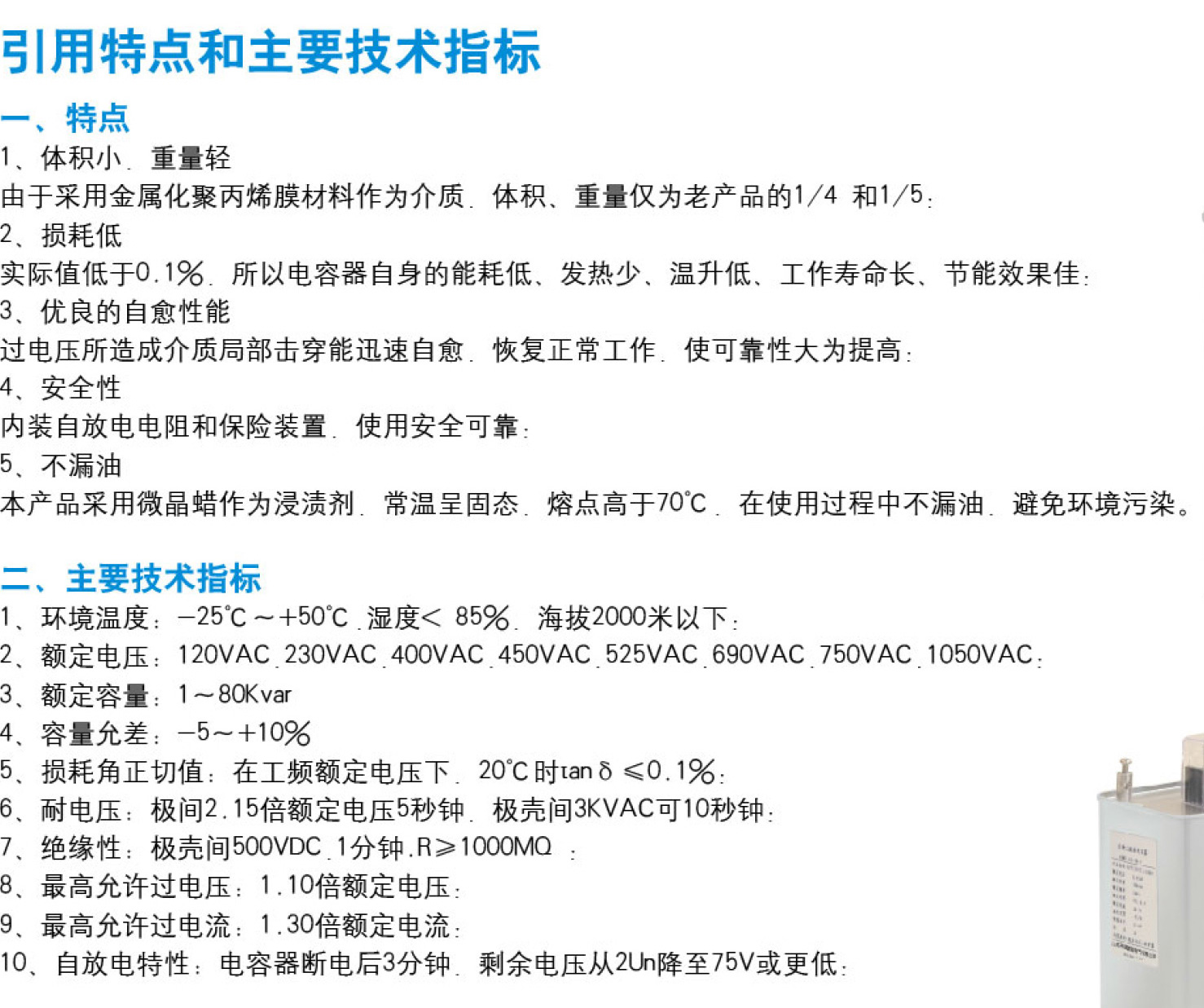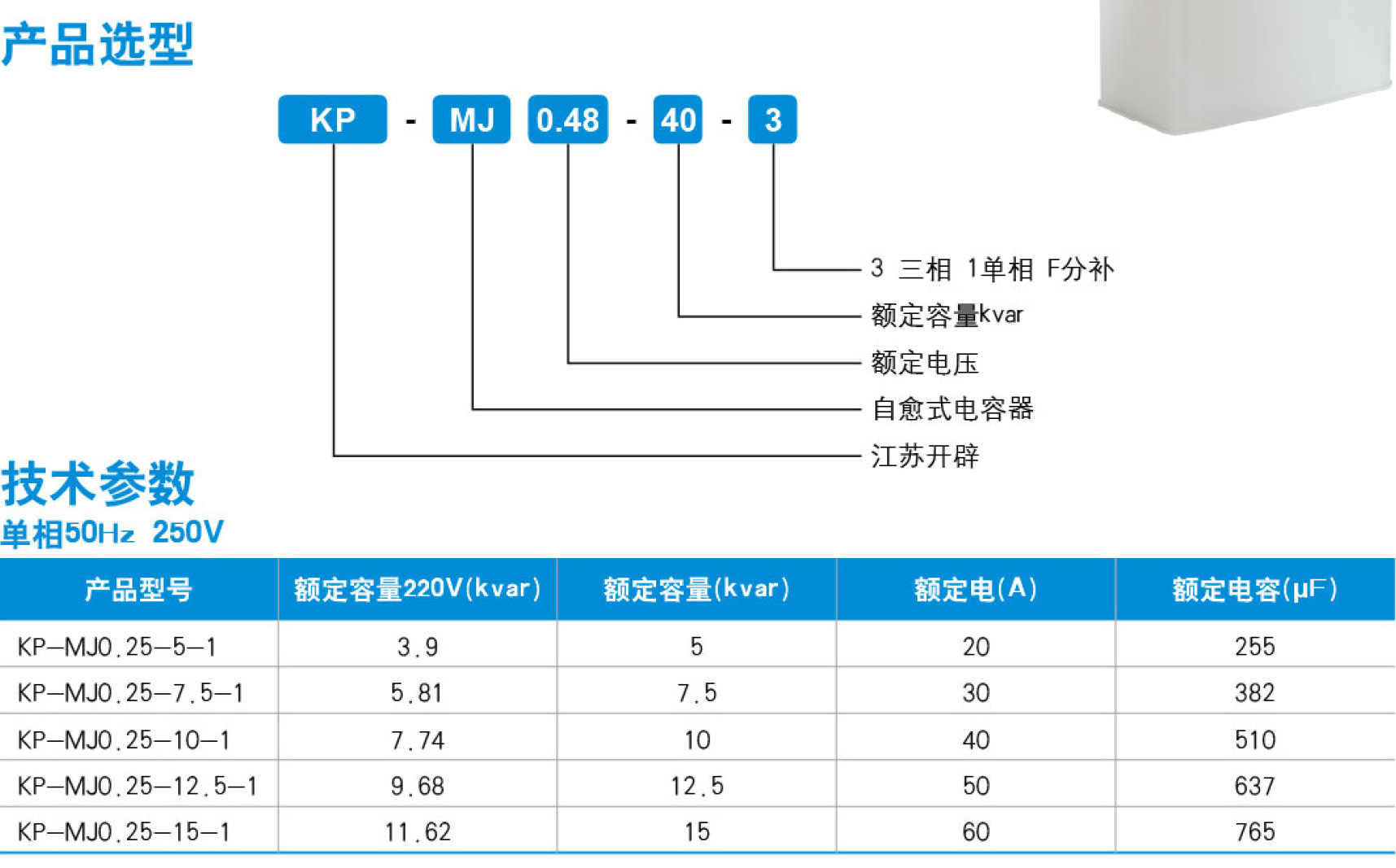 KP-MJ自愈式低壓并聯(lián)電